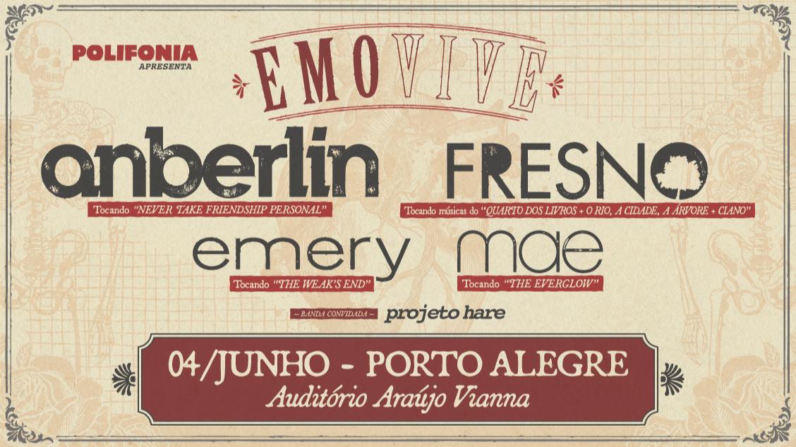 Em formato de turnê, o “Emo Vive” leva para as cidades de São Paulo, Rio de Janeiro e Porto Alegre três bandas internacionais e nosso principal representante brasileiro.